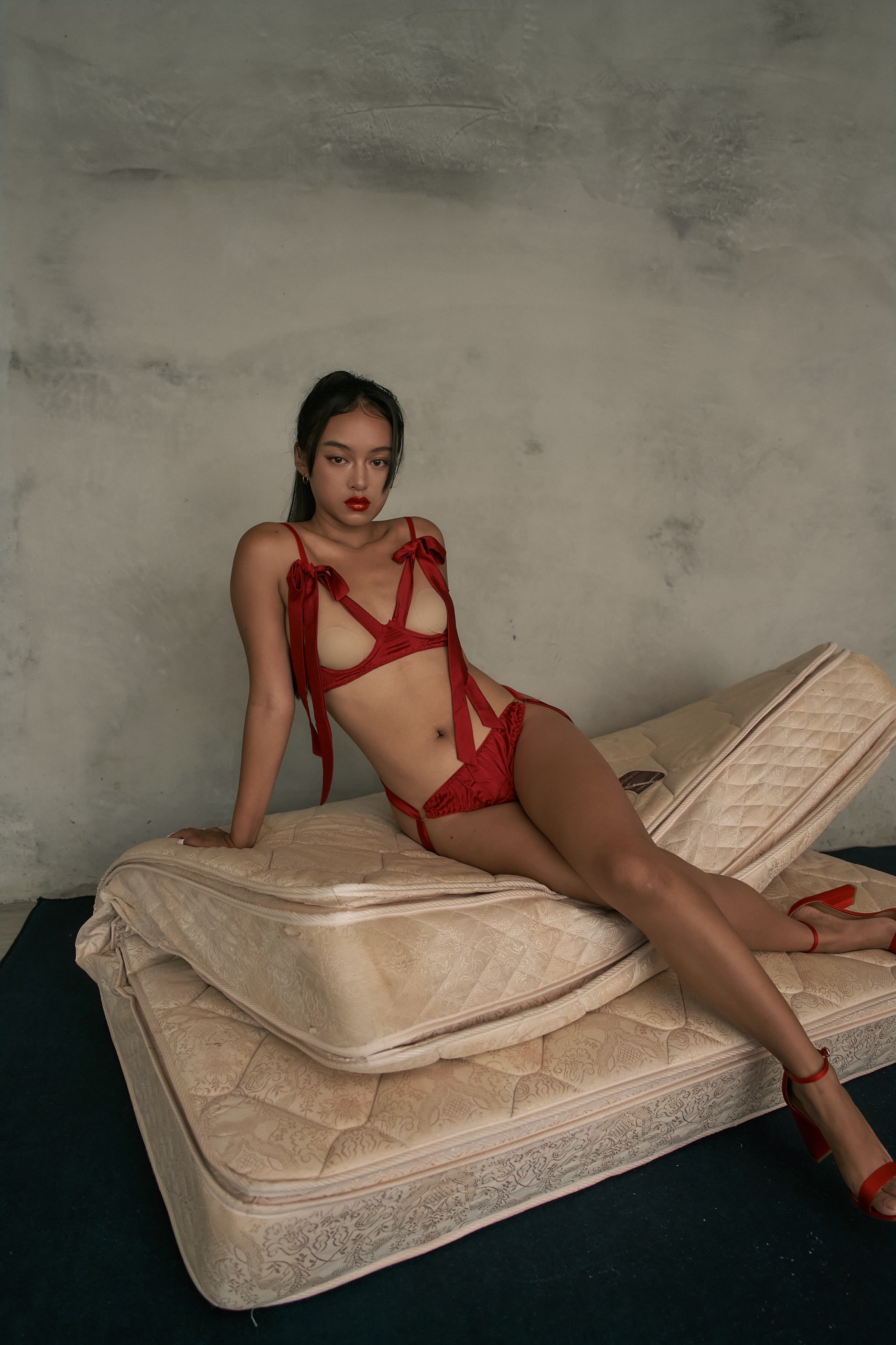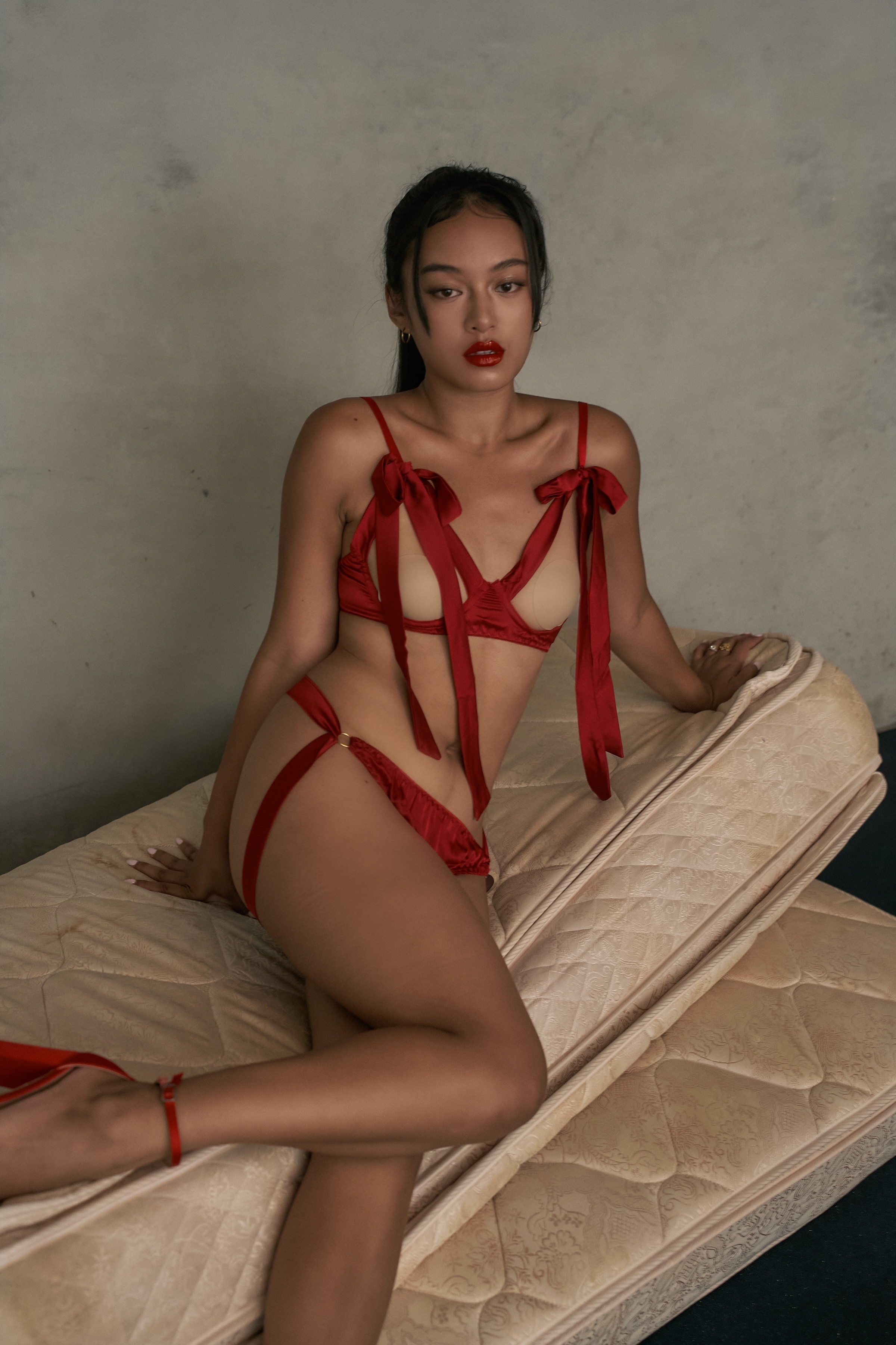 重點蝴蝶結剪裁:搭配緞帶簍空,刻劃出女性的誘人領域