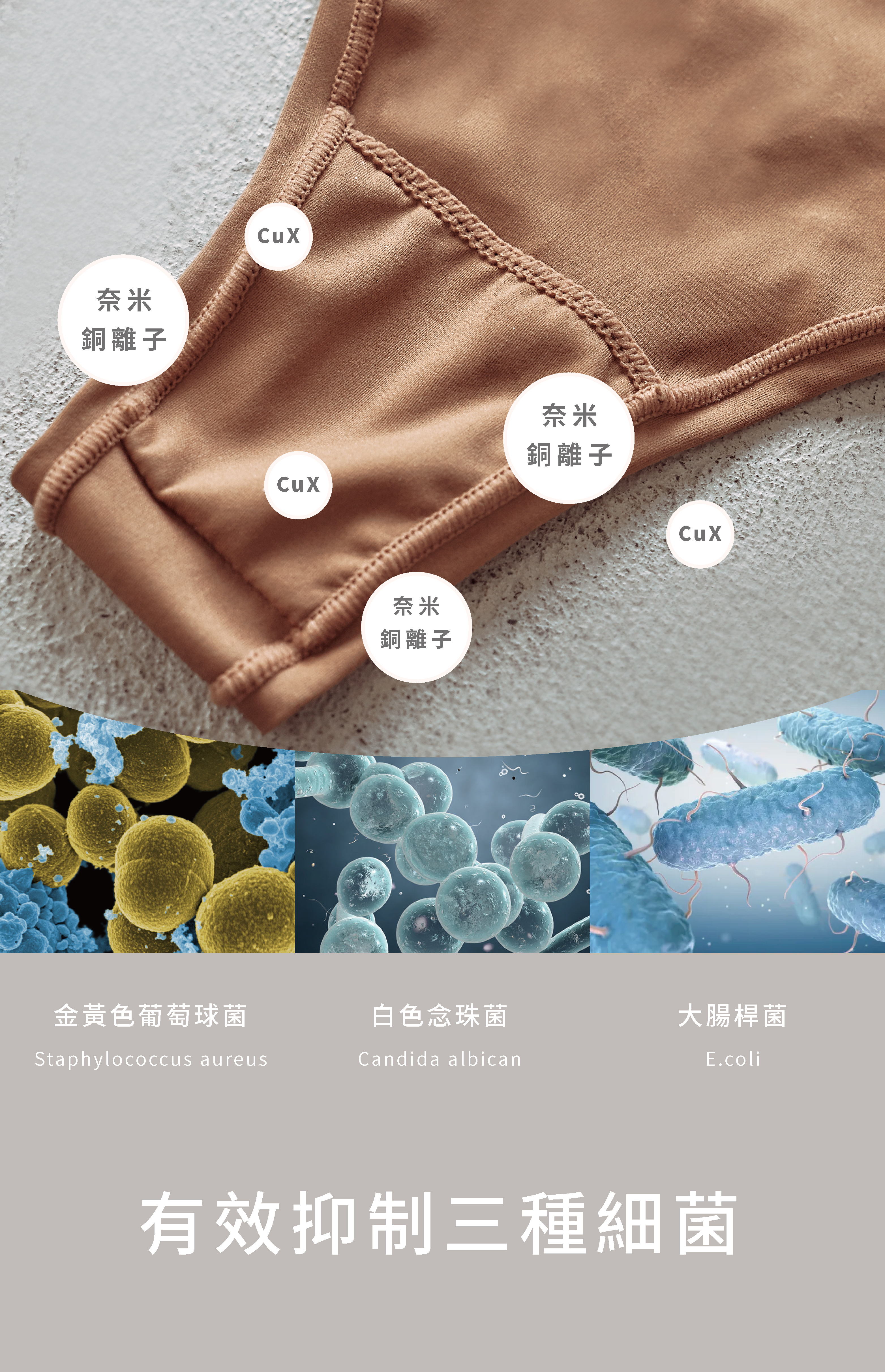 360度抗菌布料:全方位高效抑菌零死角,整條內褲具備抗菌力