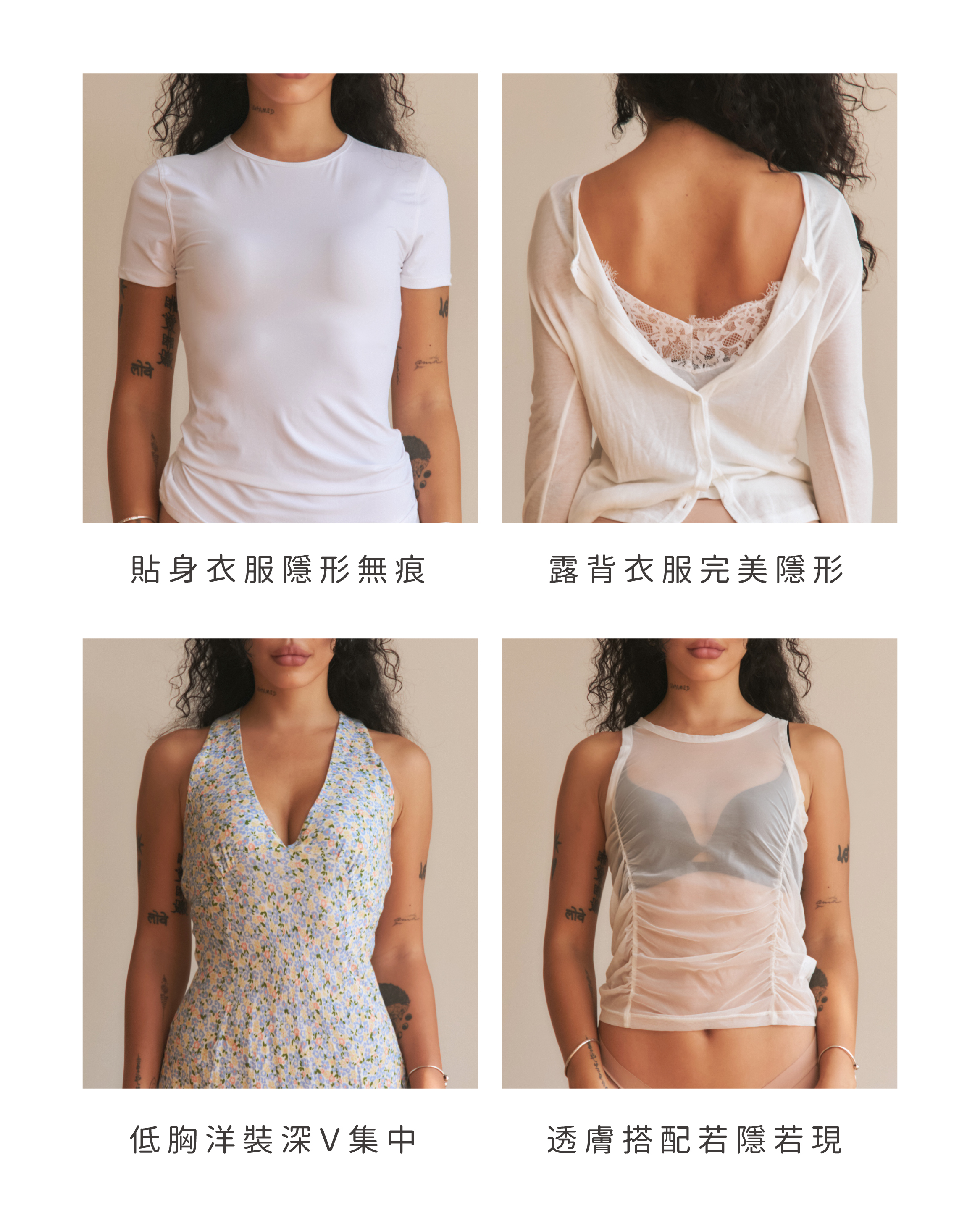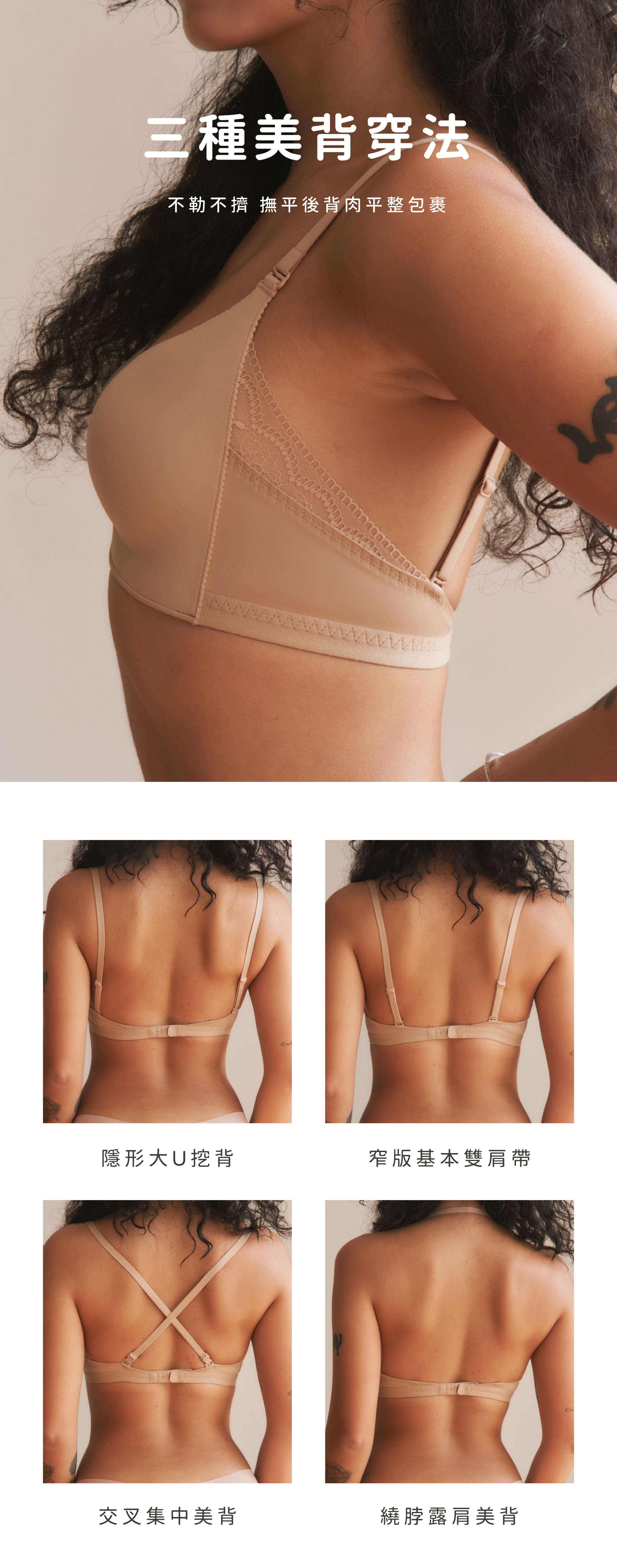 可以根據今天的服裝(露背、繞脖、交叉)自由組合