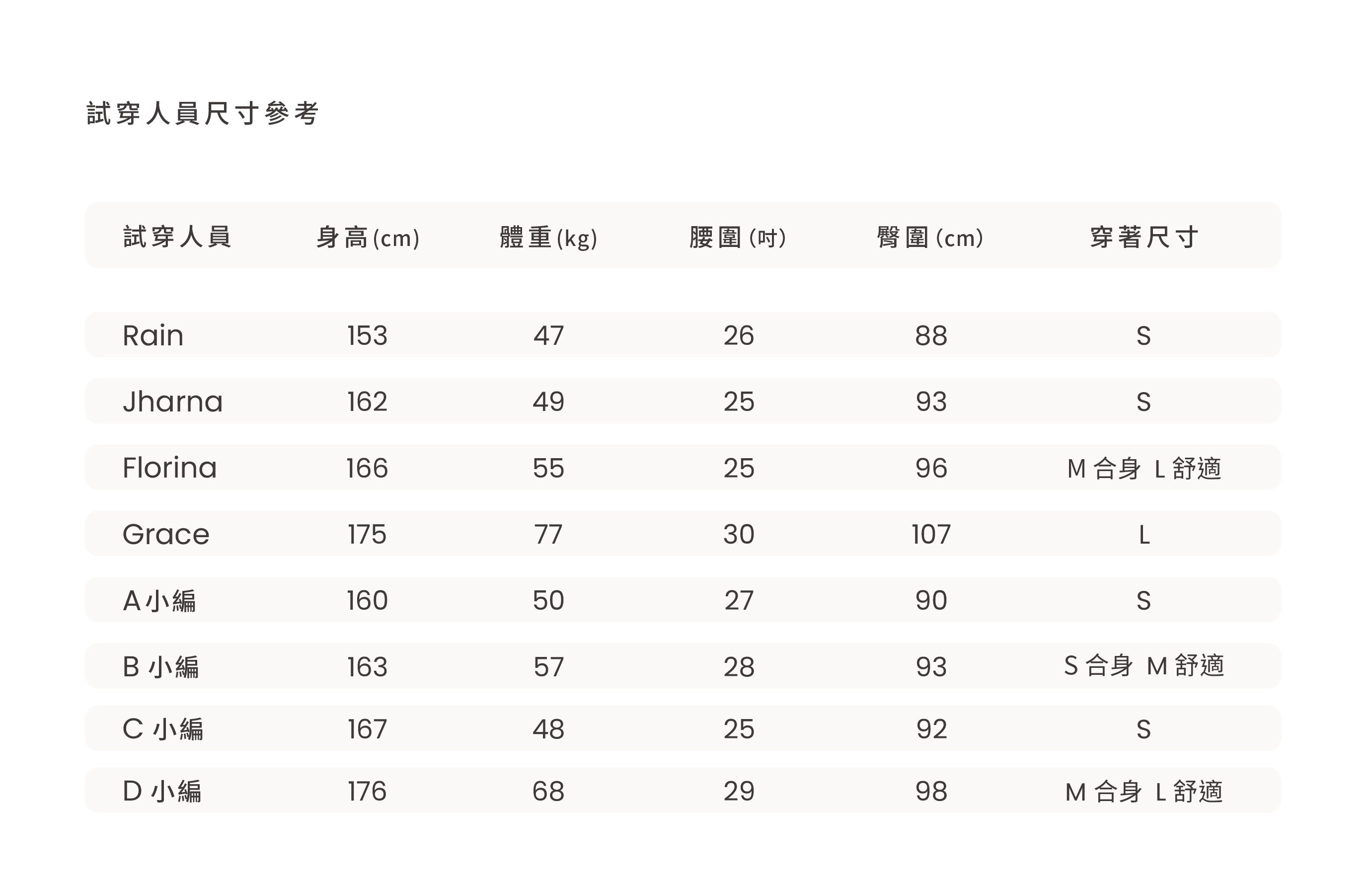 三段細緻分碼:S / M / L 不分身型百搭各種女生