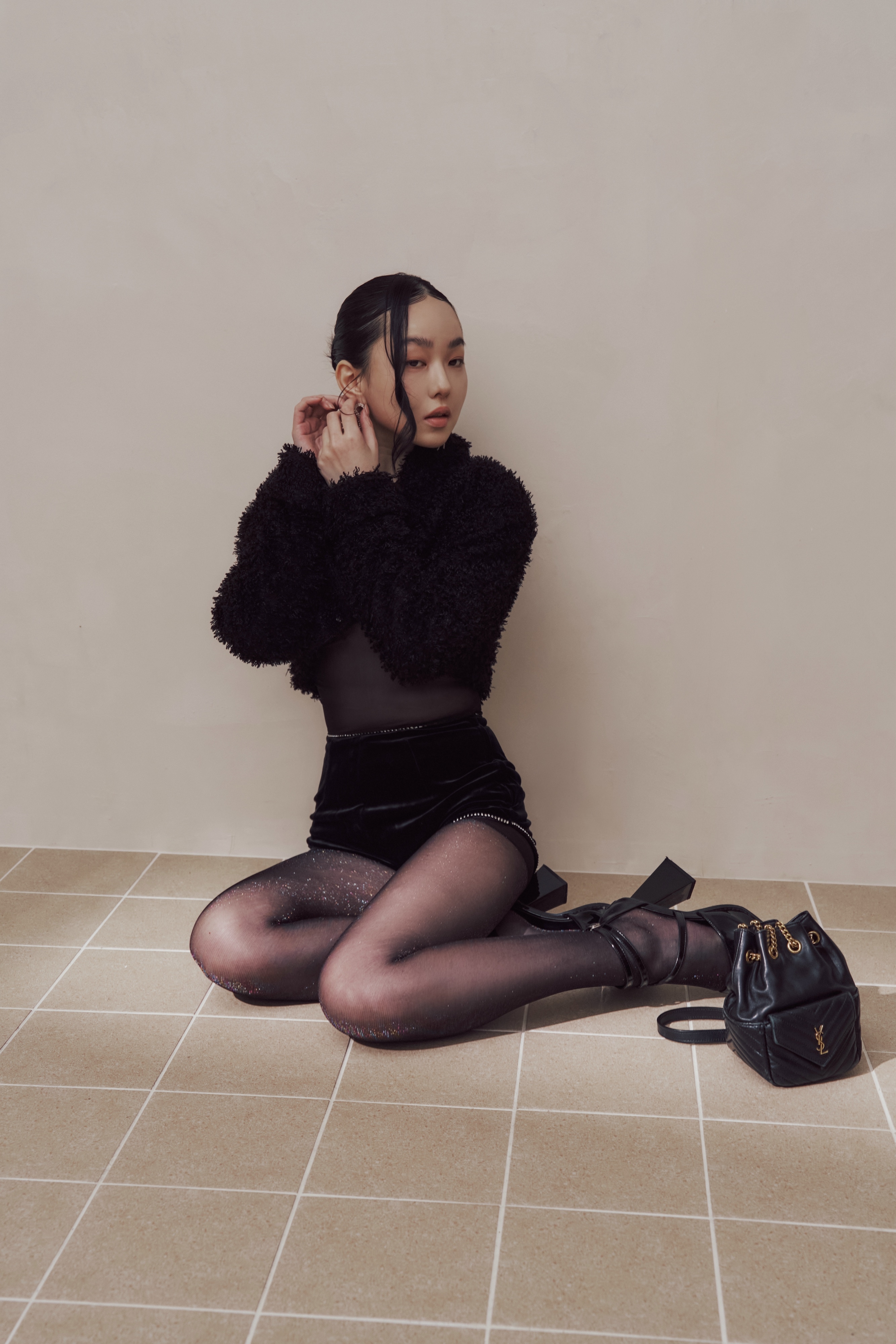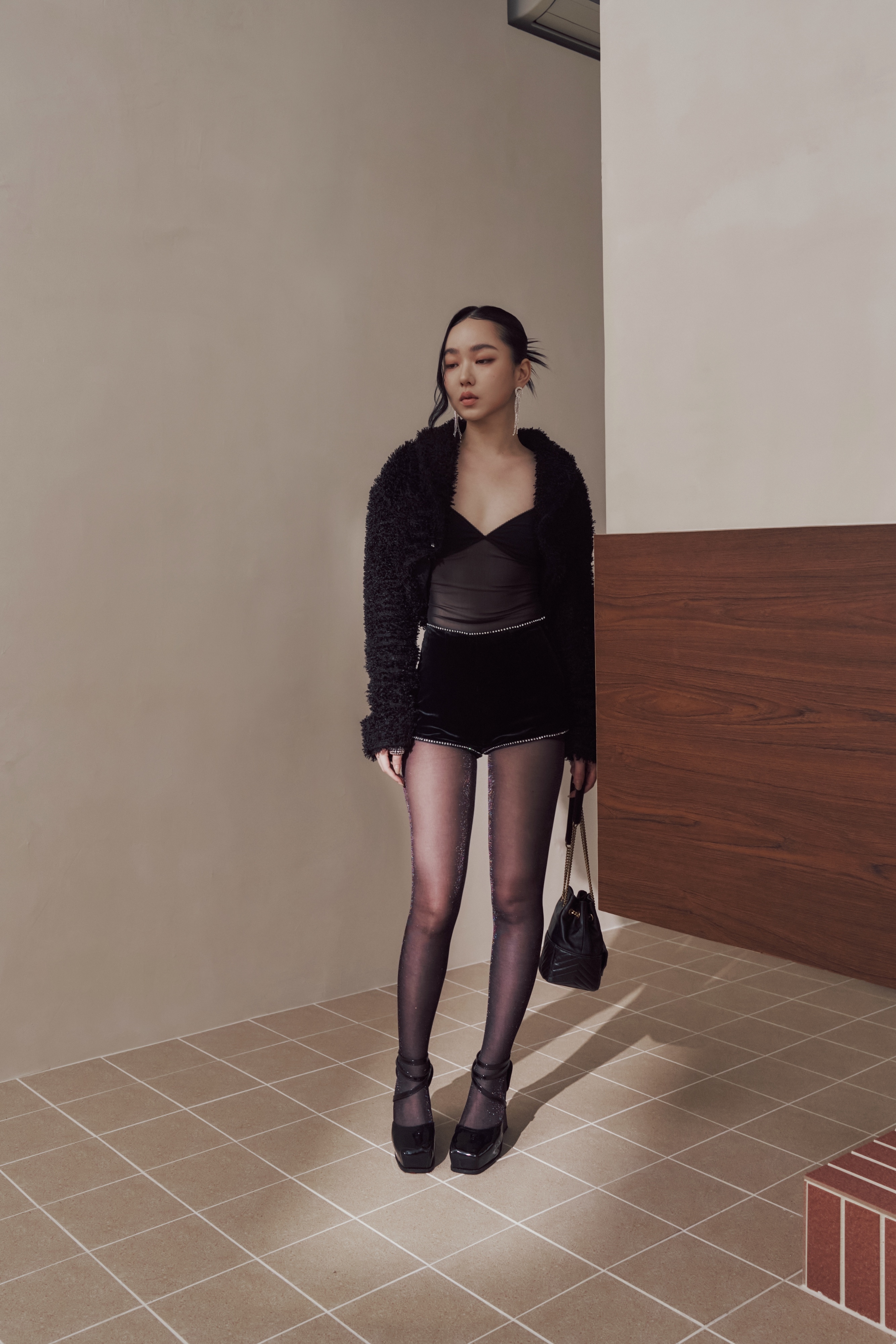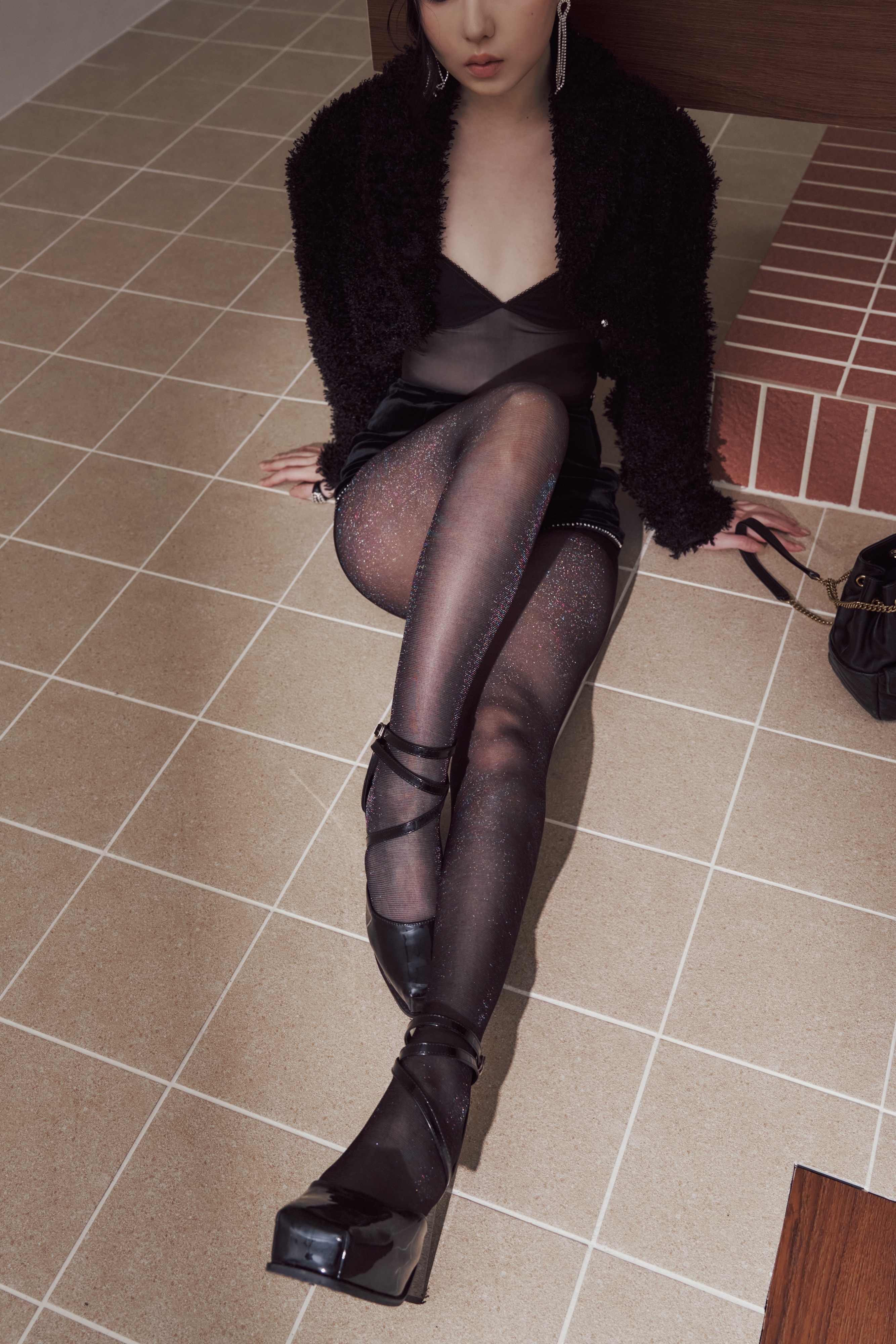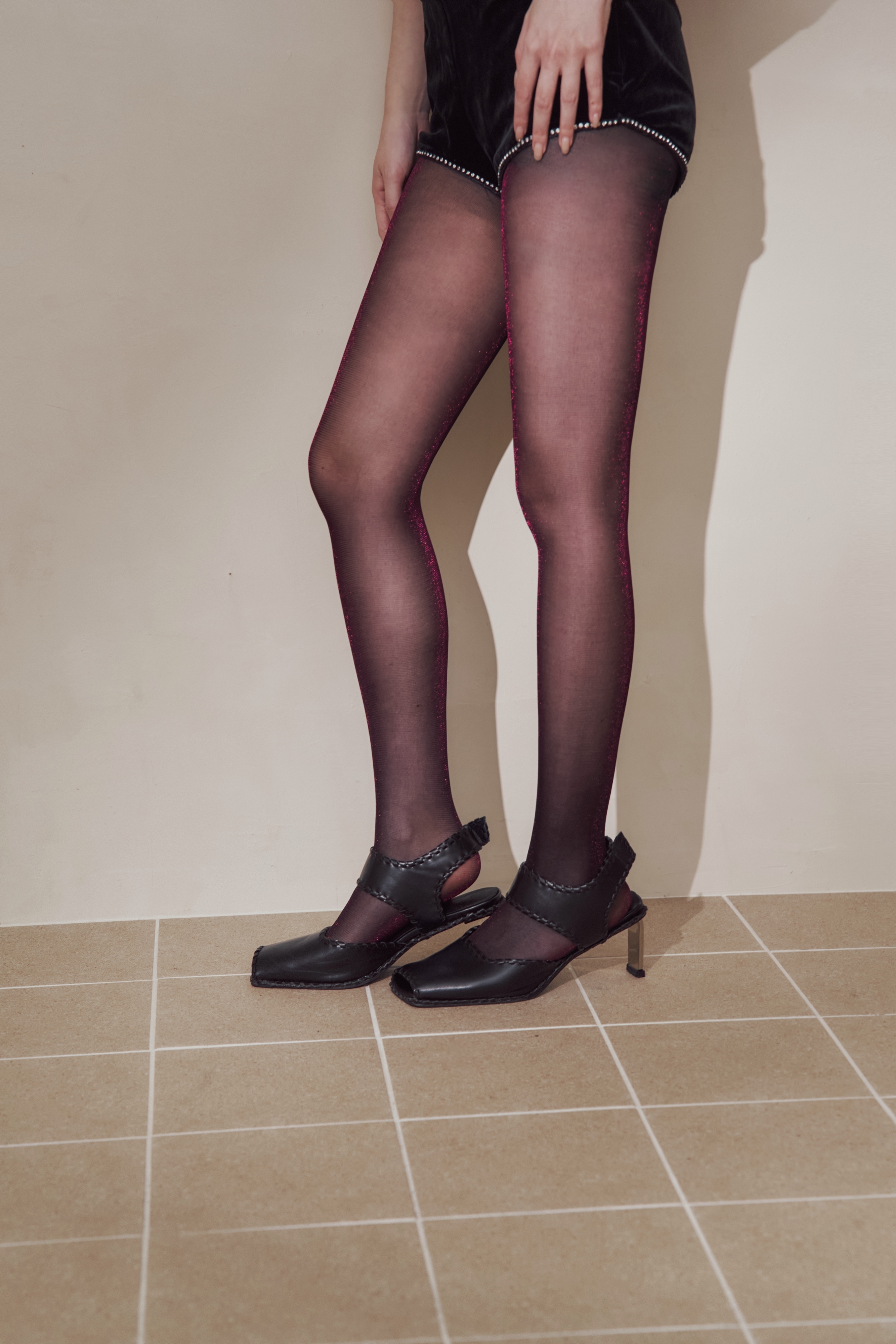 黑絲在光線下輕輕回應,不是亮,而是一瞬被捕捉的反射。
