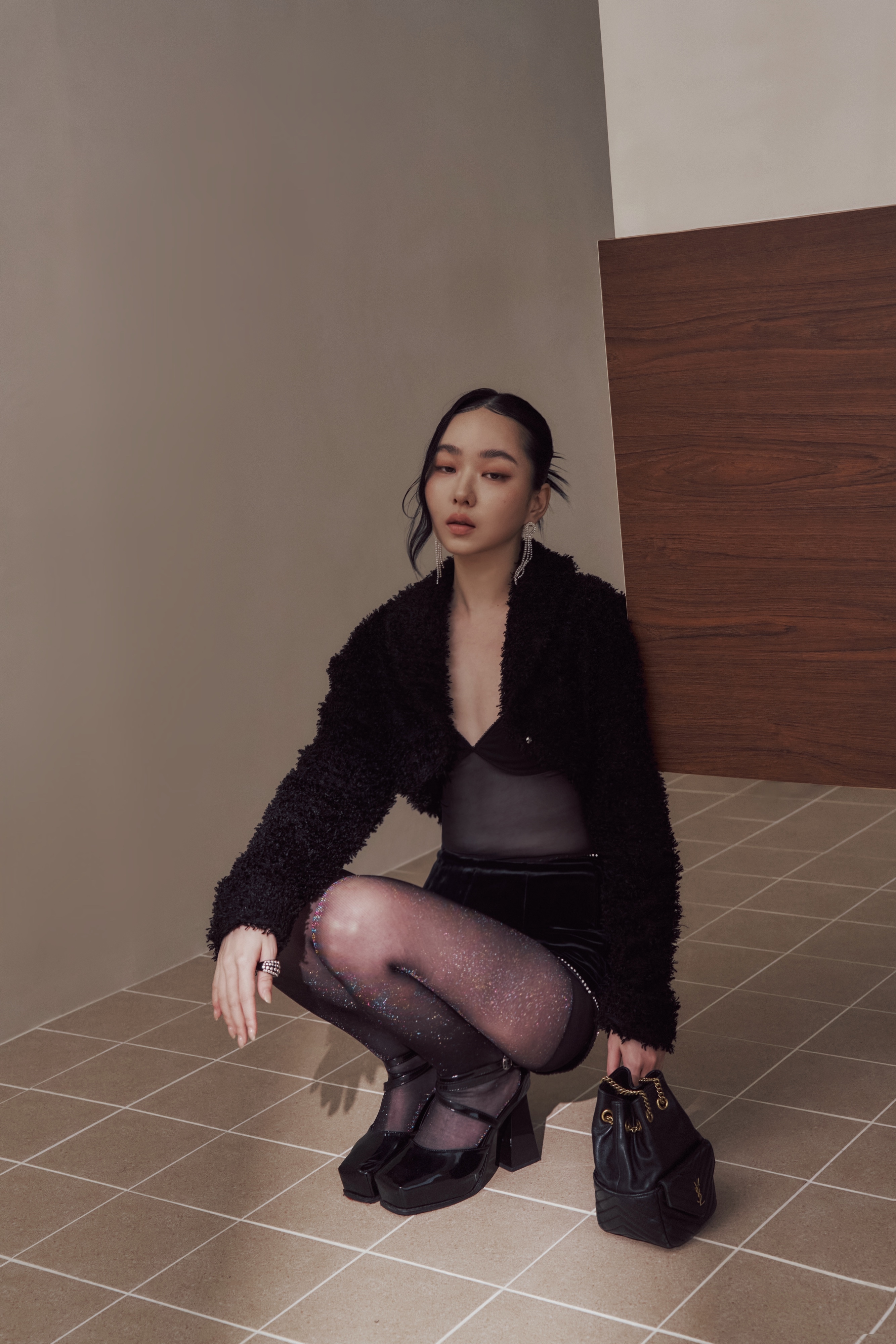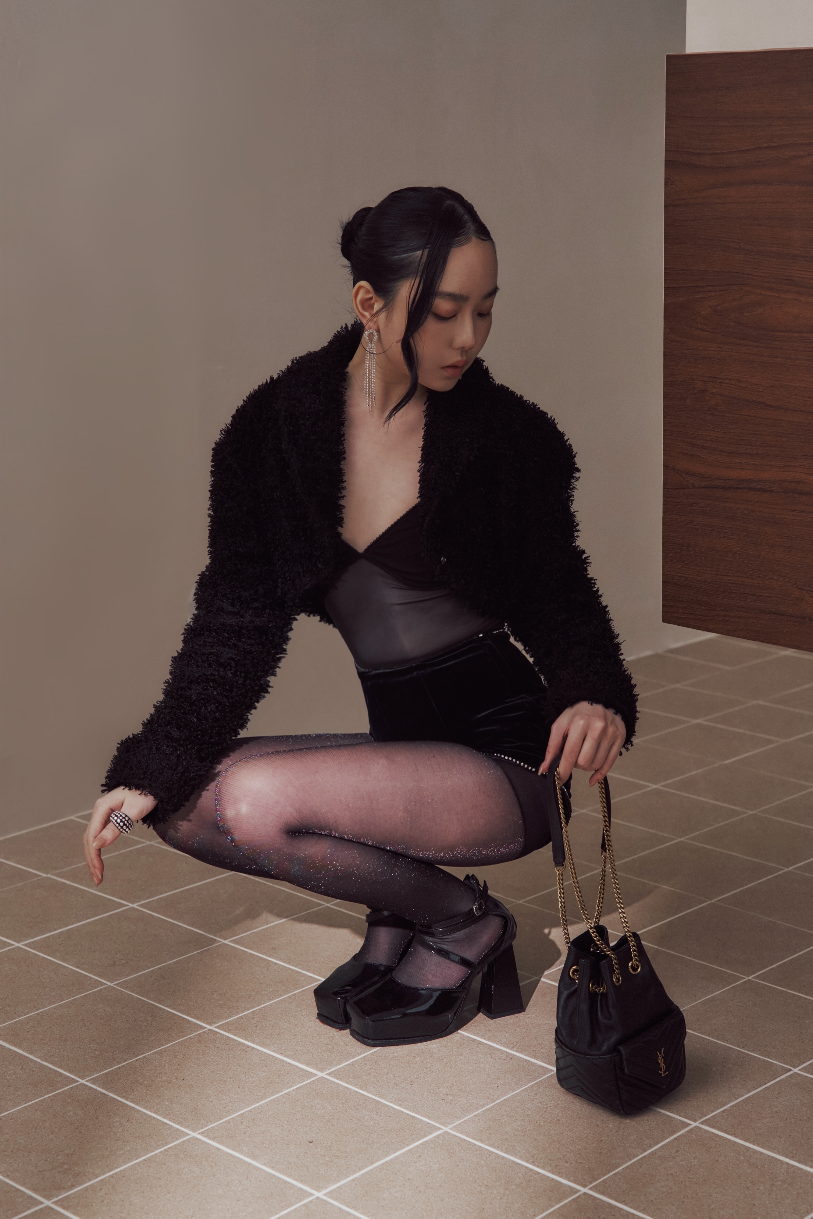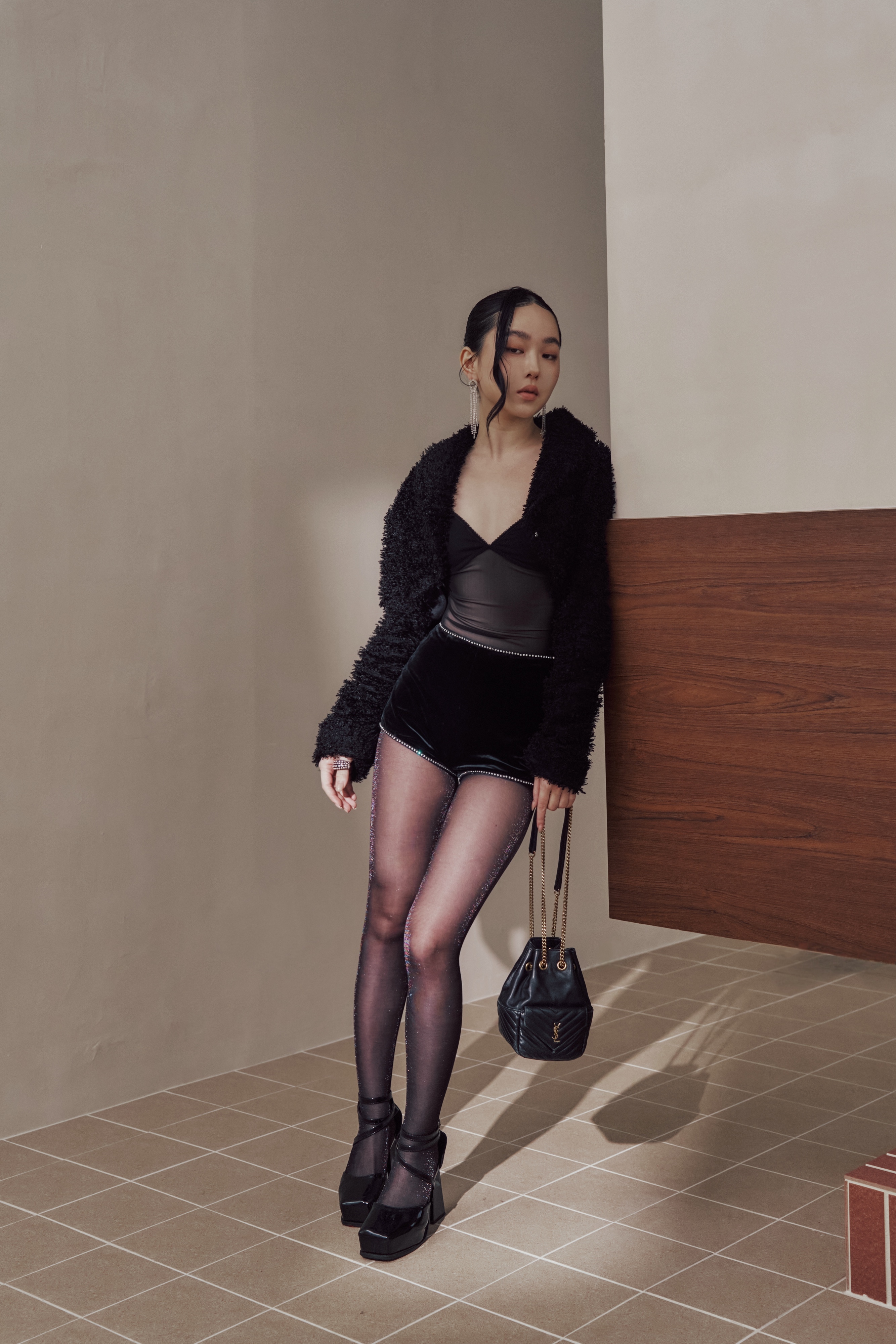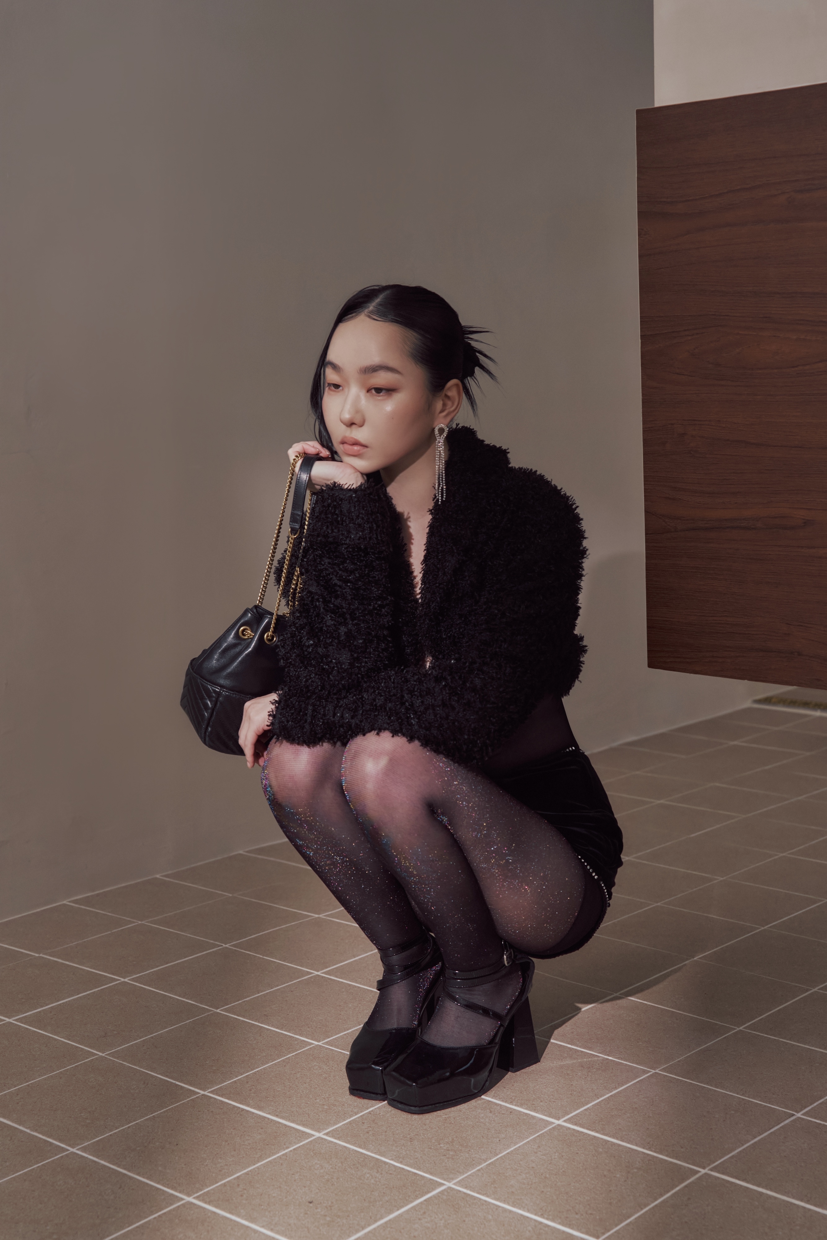 黑絲在光線下輕輕回應,不是亮,而是一瞬被捕捉的反射。