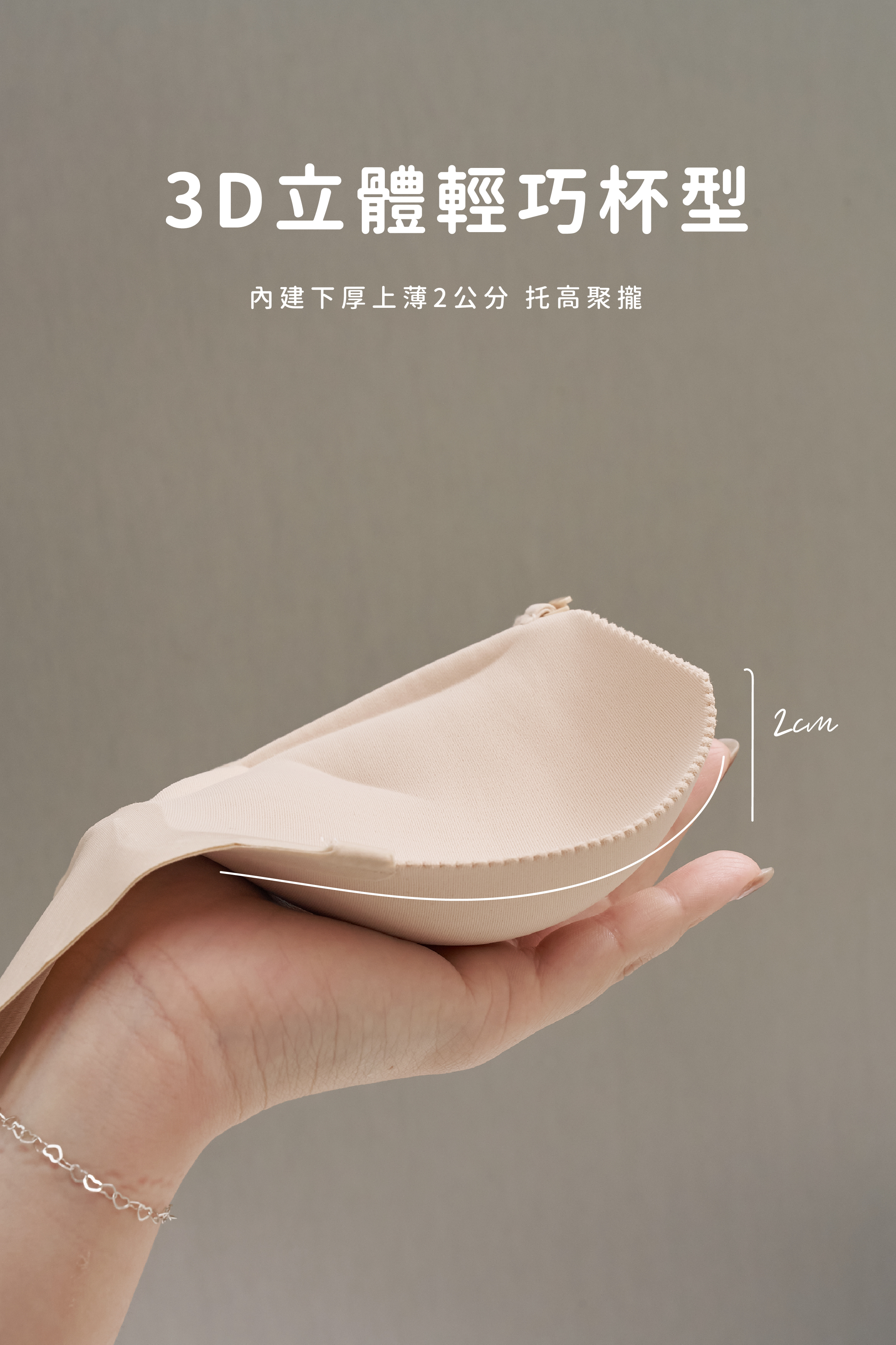 3D立體輕巧杯型:內建下厚上薄2公分,托高聚攏