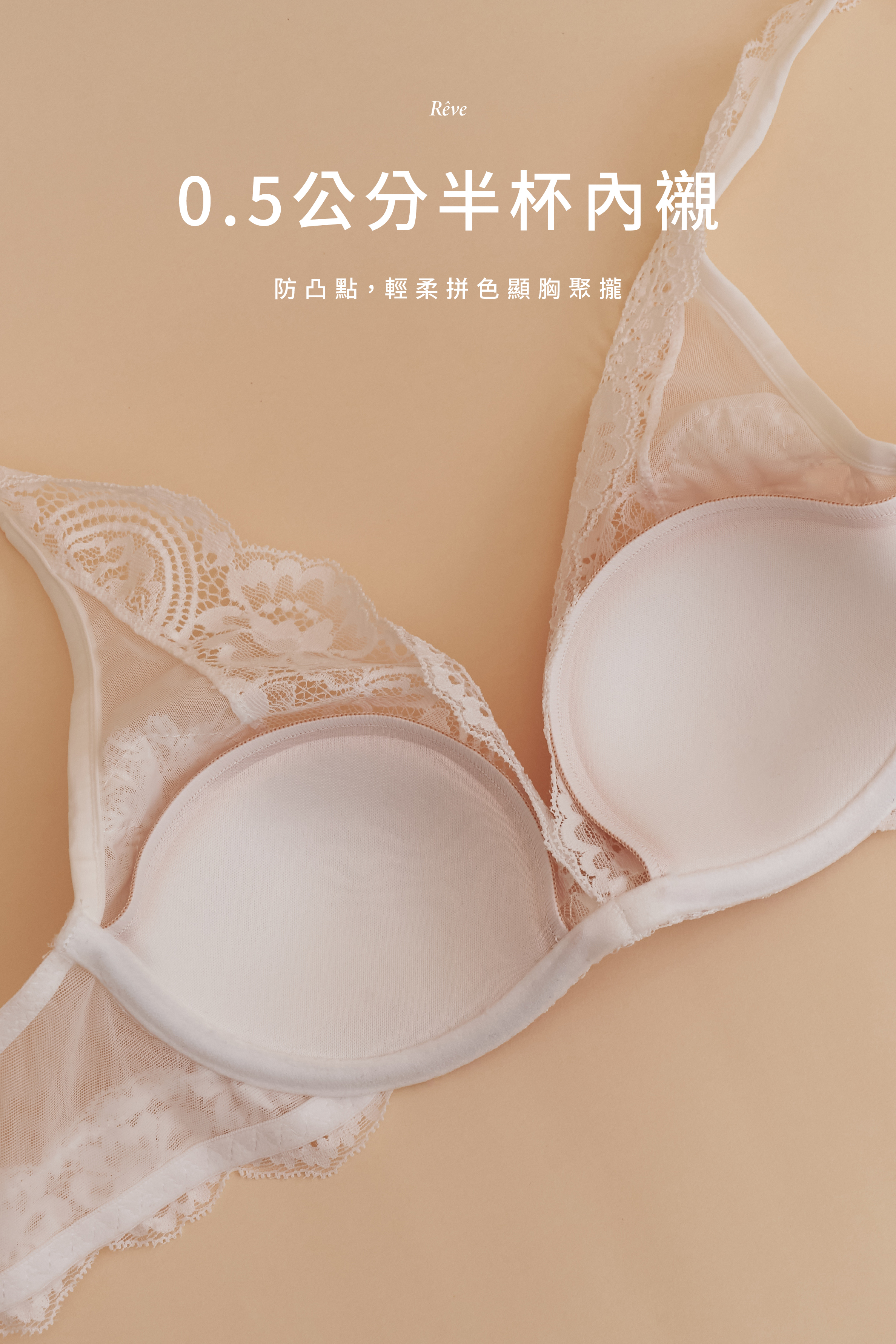0.5公分半杯內襯:防凸點,輕柔拼色顯胸聚攏