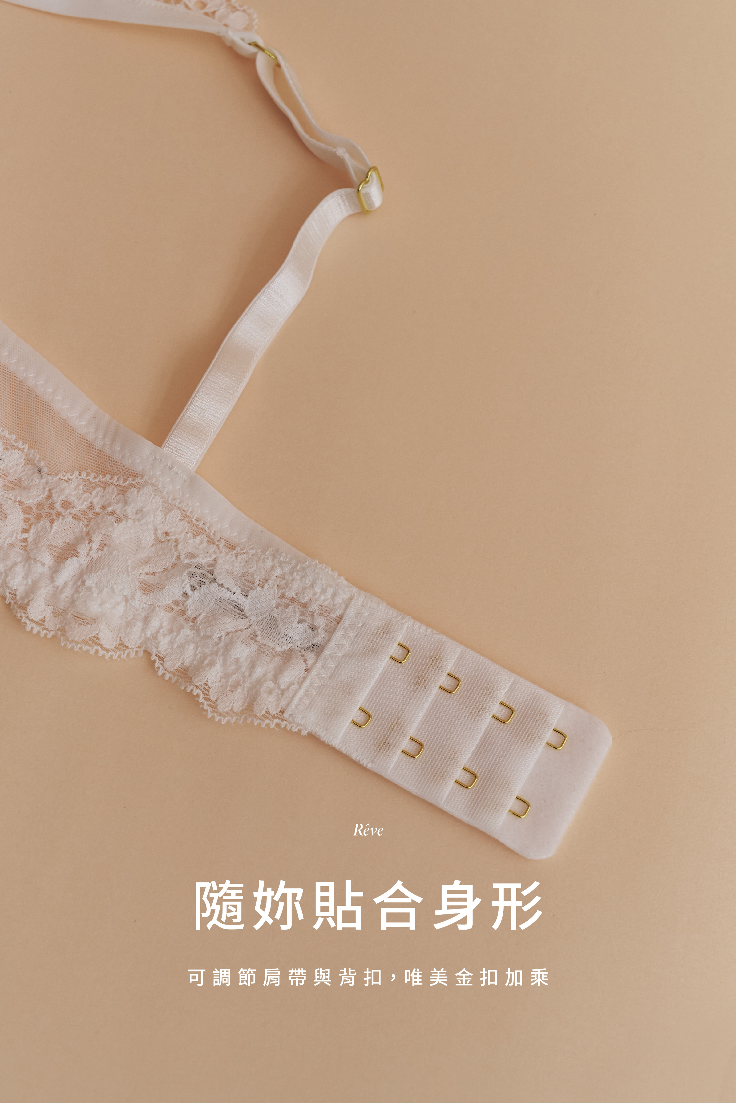 隨妳貼合身形:可調節肩帶與背扣,唯美金扣加乘