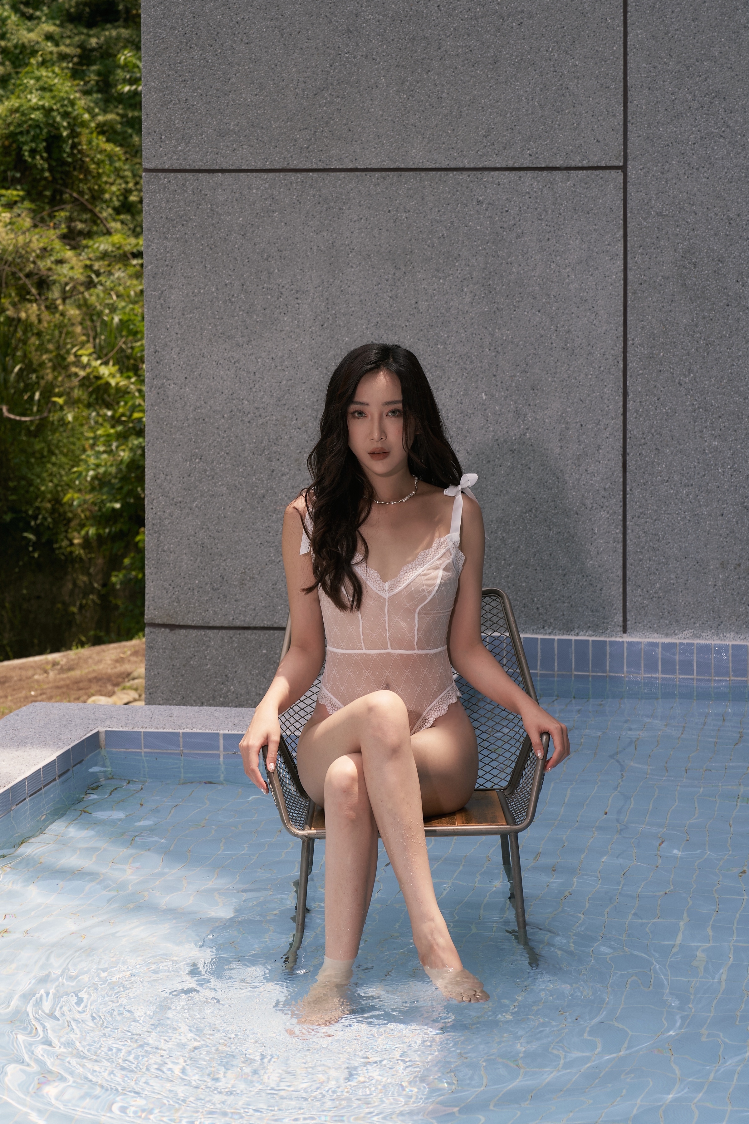 優雅勾勒背部:後背也是整片網紗映襯曲線