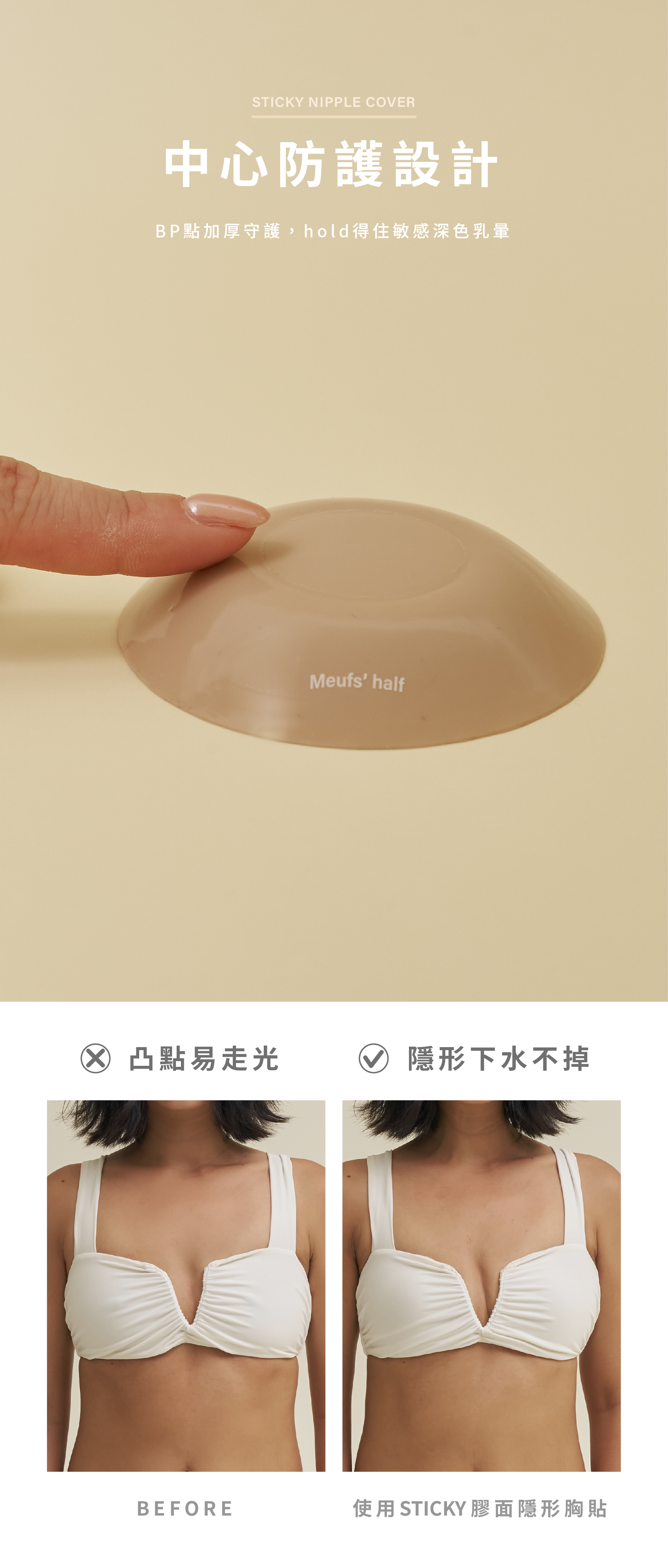 中心防護設計:BP點加厚守護,hold得住敏感深色乳暈